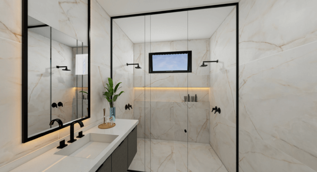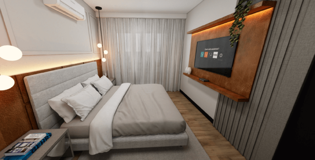 Do projeto digital à realidade. Nas simulações, a Villa Bela mostra seu ambiente de forma bidimensional ou tridimensional, para você avaliar como os revestimentos escolhidos ficariam instalados, ajudando na definição antes de efetivar a compra.